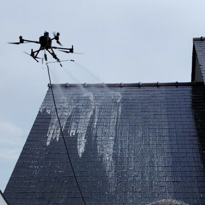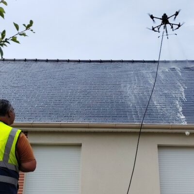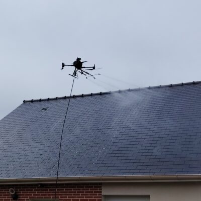 Le traitement et le démoussage par drone permettent un soin rapide de votre toiture ou façade sans mise en place préalable d’échafaudage ou de déplacement de nacelle. Aucune intervention humaine sur la toiture. La pulvérisation est précise et maîtrisée (Drone homologué et équipé d’un système de positionnement GPS).